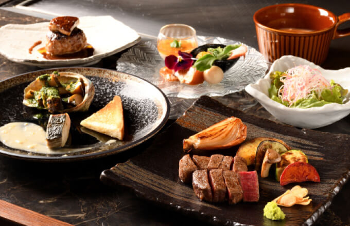 夜は高級な鉄板焼きですが、ランチメニューは極みハンバーグ1300円から。 -